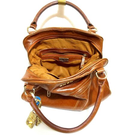 Leather is first class glossy Italian, bag is made in Turkey