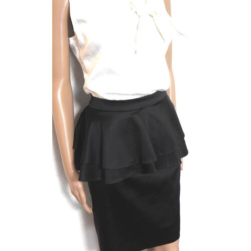 Forever New peplum pencil skirt, heavy black satin, sz. 12 - for all seasons, exc. cnd.